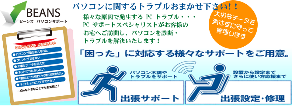 ホームページ制作、空撮など幅広く活動していますが、「PCサポートといえばやっぱりBEANS!!」と長いお付き合いのお客様にも引き続き安心してお任せいただけるよう「PCサポート」分野にも力を入れていきます。